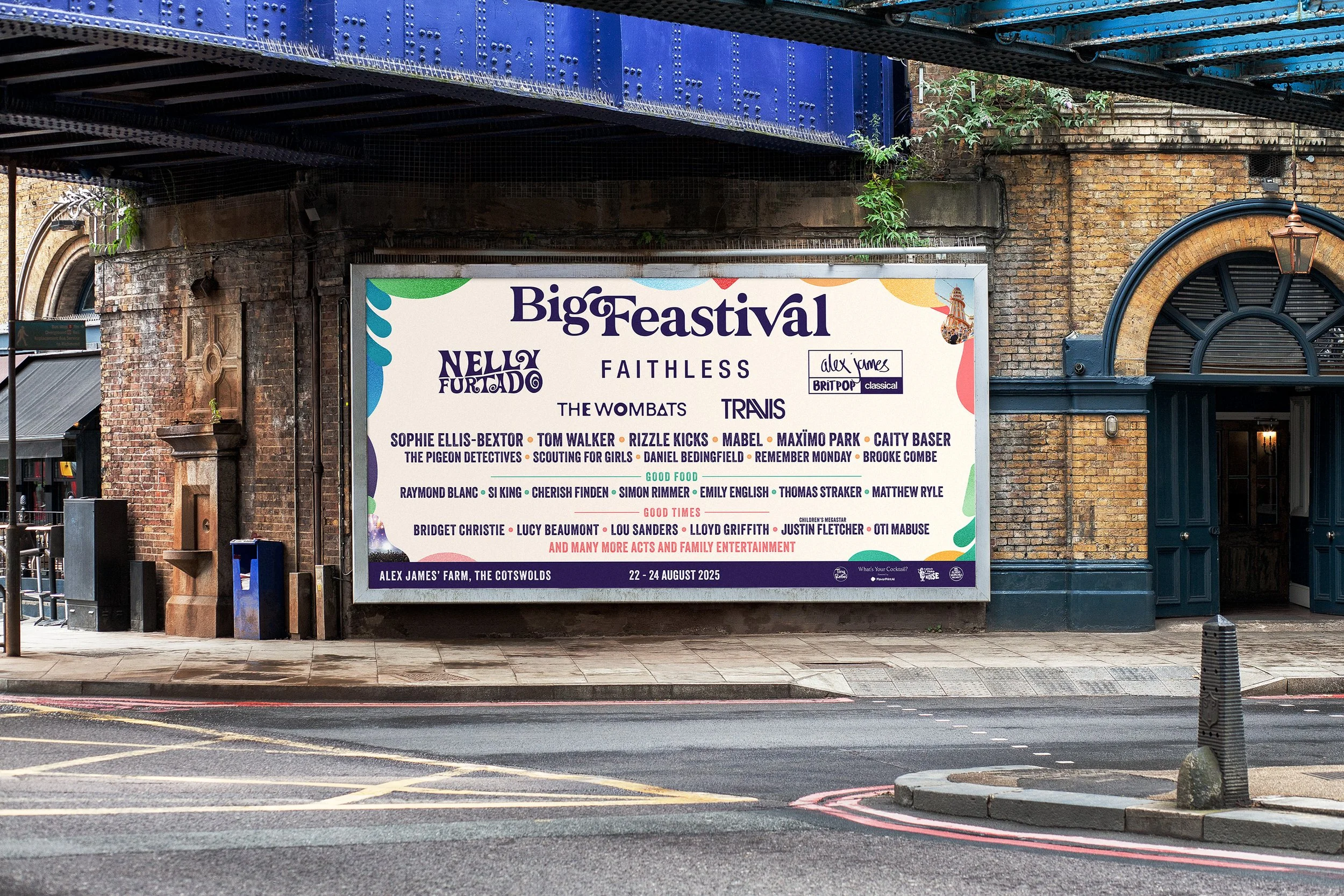 Located on Blur bassist Alex James’ scenic farm in the Cotswolds region of England, Big Feastival is the UK’s most family-friendly music and food festival. Ennis worked within the brand’s aesthetic and extended it into new territory in his role as lead designer for the 2025 B2C campaign leading up to the festival. Select accomplishments: